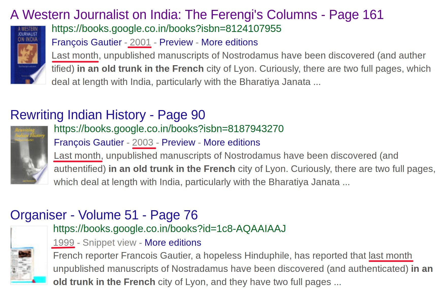 In fact, the “old trunk” has been found at least two times in the books that Francois Gautier has himself authored according to a search on Google Books.