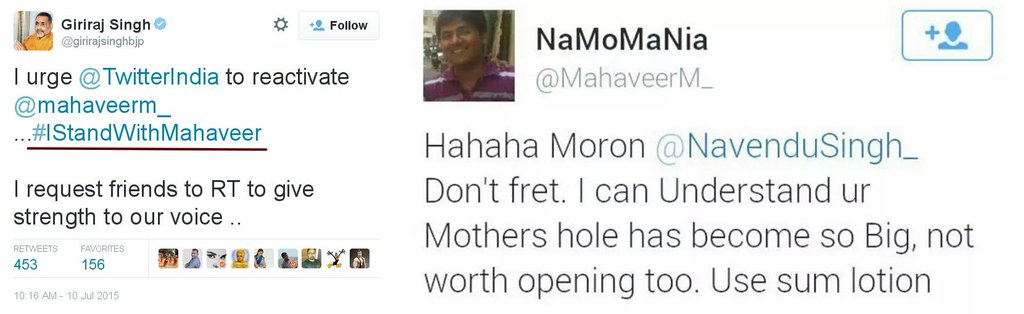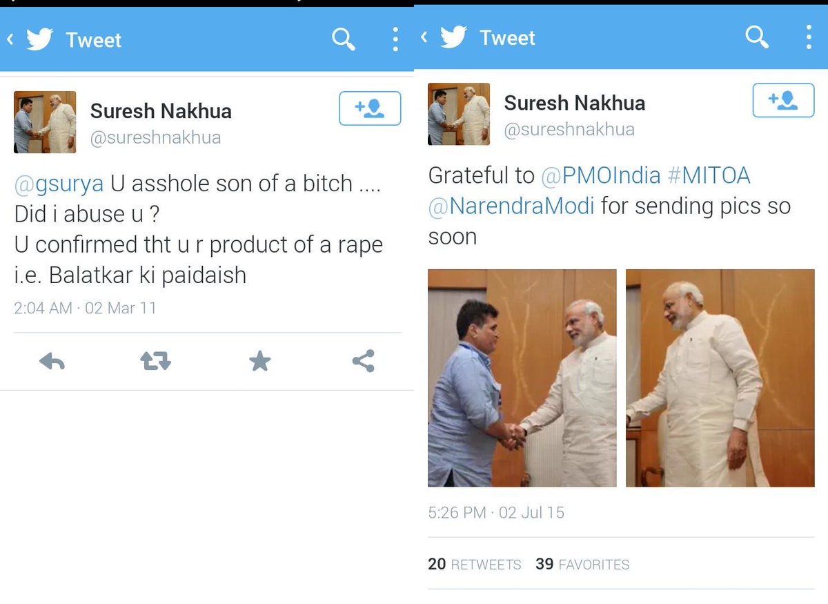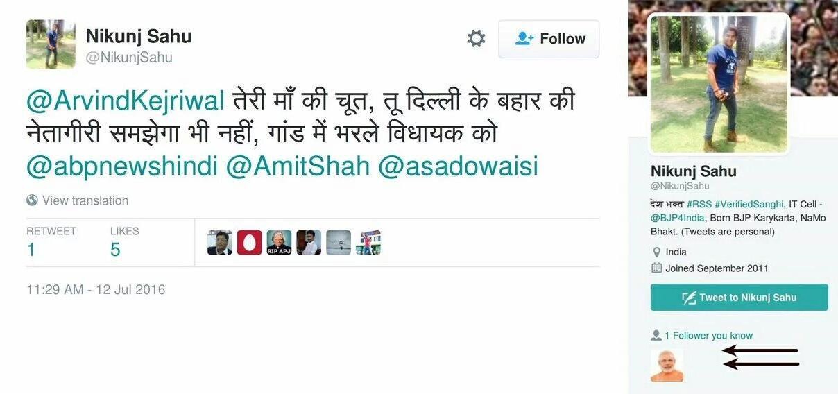 While this is a good precedent, will Indian employers also act similarly against their employees who use abusive language on social media against women? At this point of time, it is doubtful considering how many abusive people PM Narendra Modi himself follows on Twitter. At the time of writing, PM Modi personally follows 1698 people on Twitter. A fair few of them are equally abusive and yet are never reprimanded and in fact in some cases even supported by ministers. Here’s a short list of such people, each of which is followed by PM Modi on Twitter.