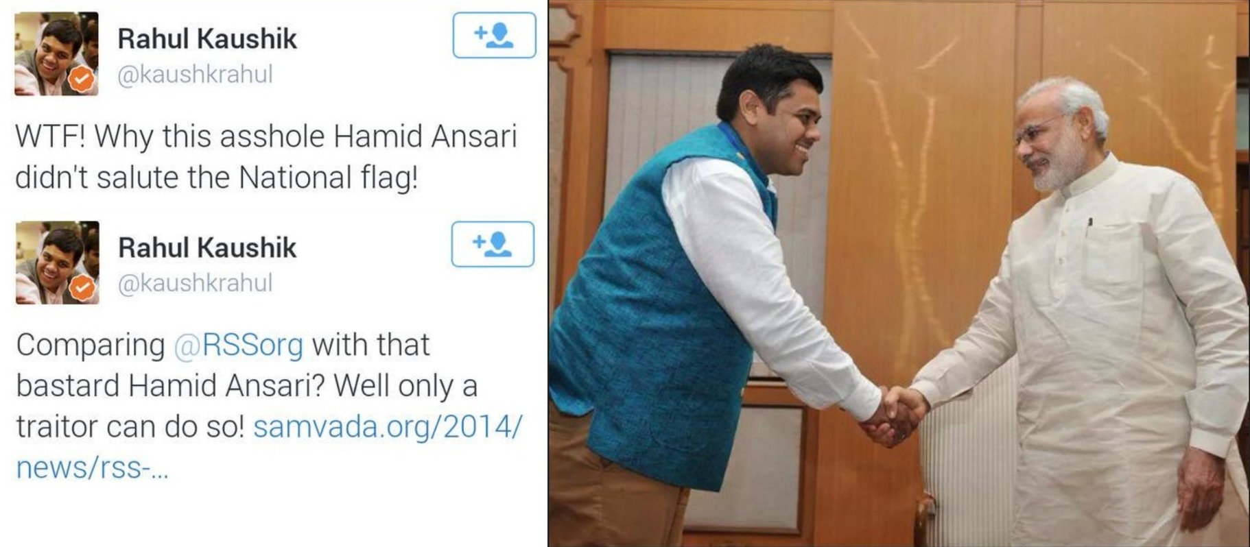 And here’s a man who called the Vice President of India, Hamid Ansari, an “a**hole” and a “b*stard”, and that is because of his pure ignorance of the Indian Flag code that a Vice President is not supposed to salute when the President is present. He gets to meet PM Modi in his PMO.