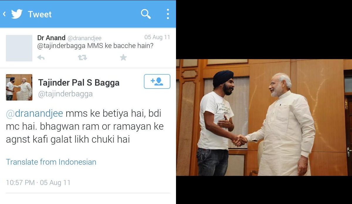 Some of these people had also been invited to meet the Prime Minister in the PMO. While the post above is by a guy called Suresh Nakhua, the screenshot below is from a person who now is the Delhi BJP Spokesperson. He says “MMS” as in Manmahon Singh “ki betiya” hai, badi “MC” hai. We all know what MC means.
