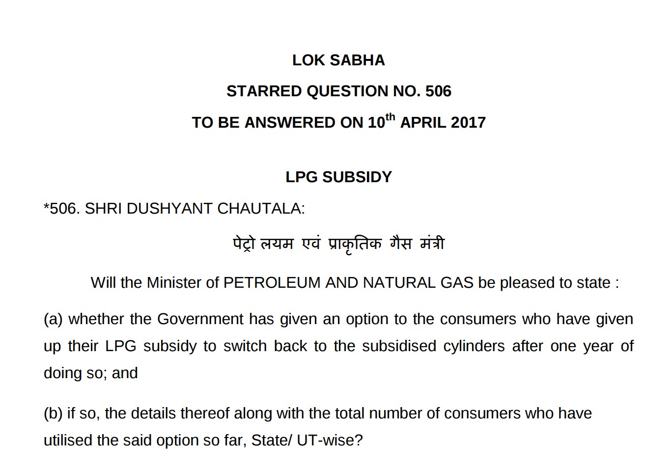 In regards to the ‘Give it up’ campaign, Mr Dushyant Chautala, the Member of Parliament from Hisar, had recently raised a question in the Lok Sabha directed at the Minister of Petroleum & Natural Gas, Mr Dharmendra Pradhan. His two-part query was: