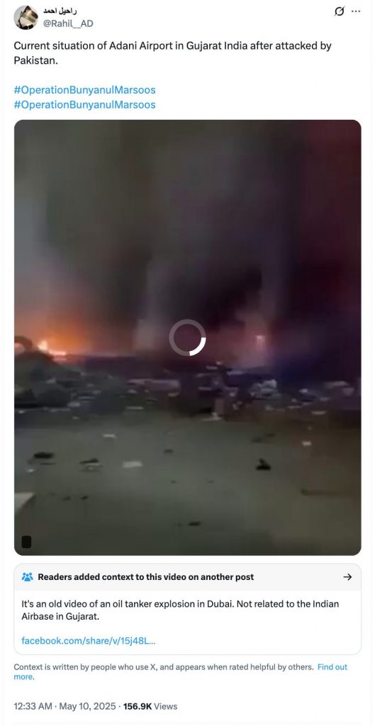To sum it up, this viral video actually depicts the explosion of an oil container at Dubai’s Jebel Ali port 4 years ago. Some media outlets and Pakistani users are sharing it with the false claim that the Gujarat port was destroyed in Pakistani retaliation following ‘Operation Sindoor’.
