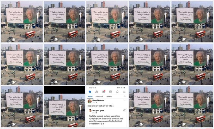 An image of a billboard featuring a photo of Queen Elizabeth II has gone viral on social media with the caption, “Thank you PM Modi for sending us COVID-19 vaccines. You are a good boy.” The photo has been shared against the backdrop of the UK purchasing 10 million doses of the Oxford-AstraZeneca vaccine manufactured by the Serum Institute of India (SII). The first batch of 5 million doses was dispatched on March 5. Twitter user @anandagarwal554 shared the picture and wrote, “The same British Empire where the sun never set, and which ruled over us for 200 years, is now graciously thanking Prime Minister Modi. Queen Elizabeth II thanked Mr. Modi with this billboard in London for helping supply the COVID-19 vaccine to England.”