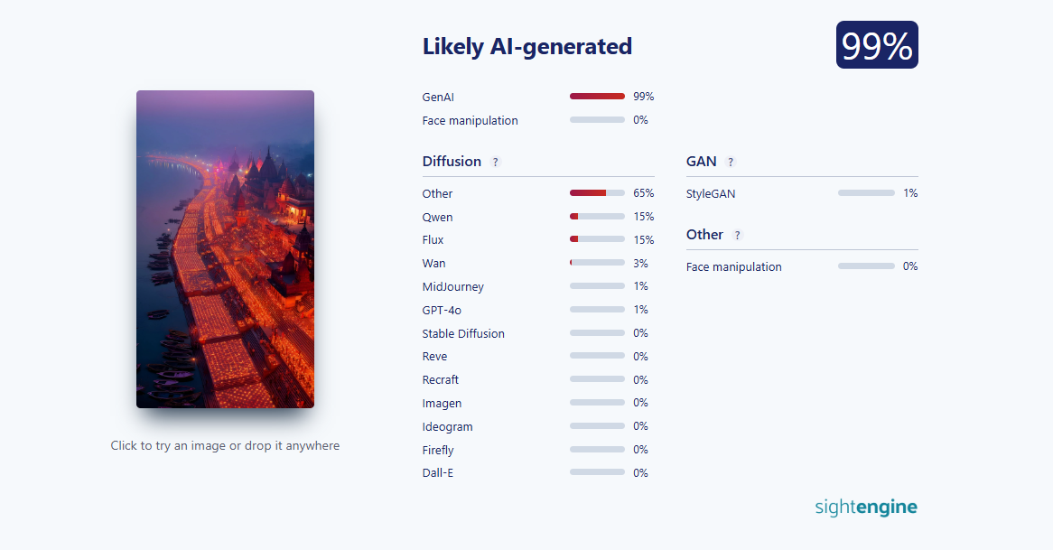 An AI detector platform Sightengine also said that there was a 99% likelihood of the image being AI-generated.