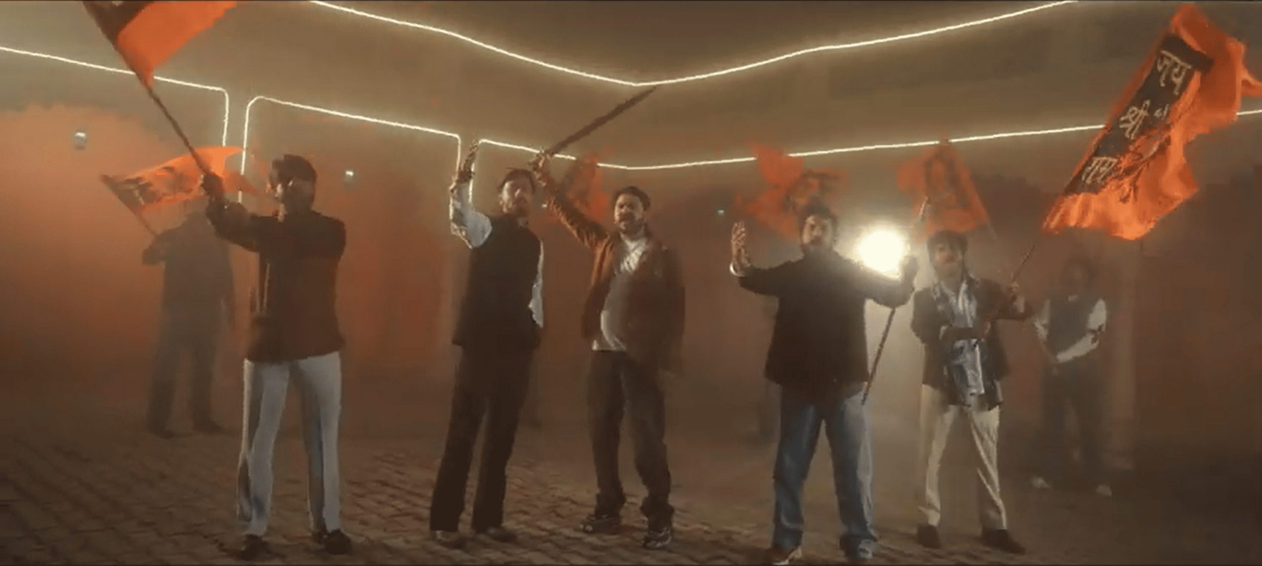 In it, these men could be seen brandishing swords and firearms. The song opens with the following line, “Hain mata Bhavani ki saugan, jis din ye Hindu jaagenge, ye Akbar, Babar ki aulade chhodke Bharat bhaagenge…” (I swear on Mata Bhavani, the day Hindus wake up, these children of Akbar and Babar will be running away from Bharat).