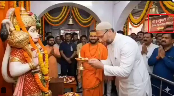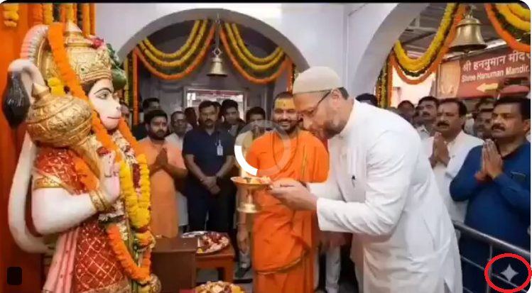 A video is viral on social media showing AIMIM president and Hyderabad MP Asaduddin Owaisi performing an aarti in front of an idol of Hanuman.