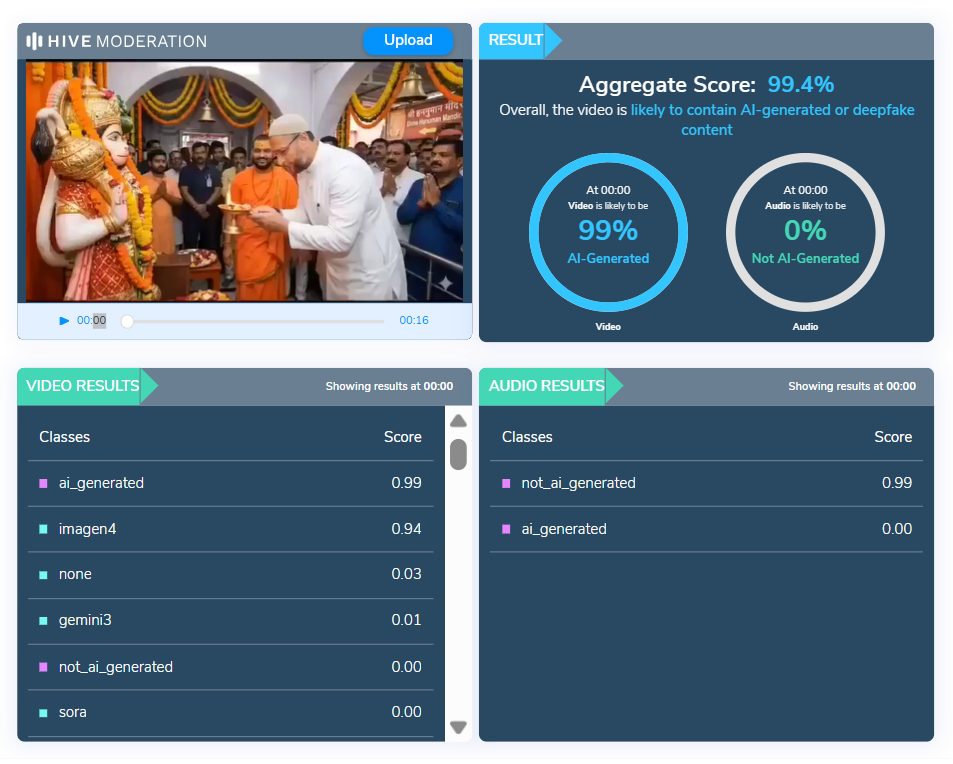In conclusion, the viral video which is doing the rounds on social media showing AIMIM president Asaduddin Owaisi performing an aarti is AI-generated.