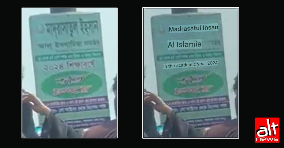 On taking a close look at the video, we noticed an advertisement board with text written in Bengali script. We noticed that the board said, “Madrasatul Ehsan Al-Islamia”, and the fourth and fifth lines said, “In the academic year 2024” and “Admissions open”.