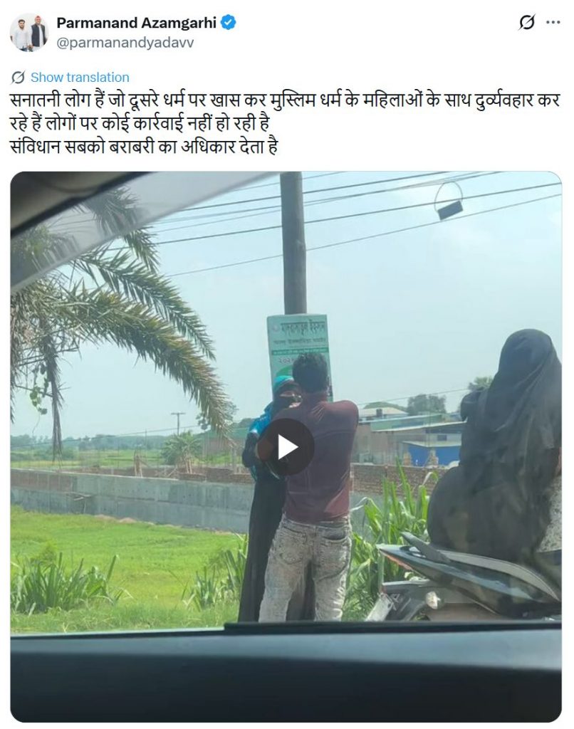 Another X user, Parmanand Azamgarhi (@parmanandyadavv), whose bio states that he is the national secretary of Samajwadi Party chatra sabha, also posted the same clip on November 26 and mentioned in the caption: “Sanatani people are mistreating women of other religions, especially Muslim women, and no action is being taken against these people. The Constitution grants equality to everyone.”