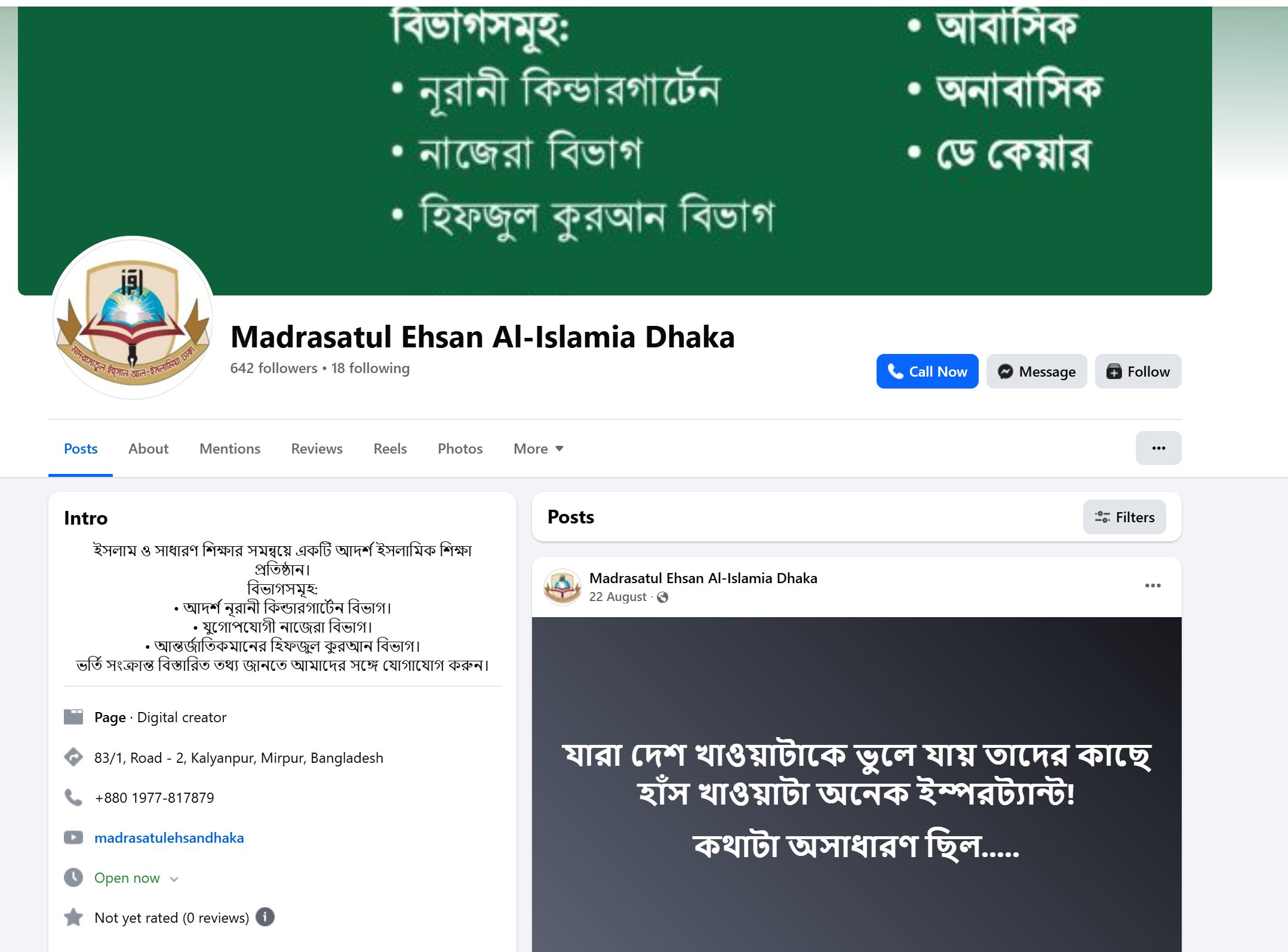 On running a Google search, we found an educational institution by the same name in Dhaka, Bangladesh. We went through the institution’s Facebook page, and the address on the page said, “83/1, Road – 2, Kalyanpur, Mirpur, Bangladesh”. This shows that the institution is based in Bangladesh, which indicates that the location of the viral clip is Bangladesh, not India.
