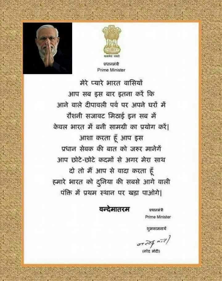 A letter claimed to be written by Prime Minister Narendra Modi was doing the rounds on social media in August. The ‘letter’ urges citizens of India to buy only India-made products this Diwali, and it has a signature of the Prime Minister.
