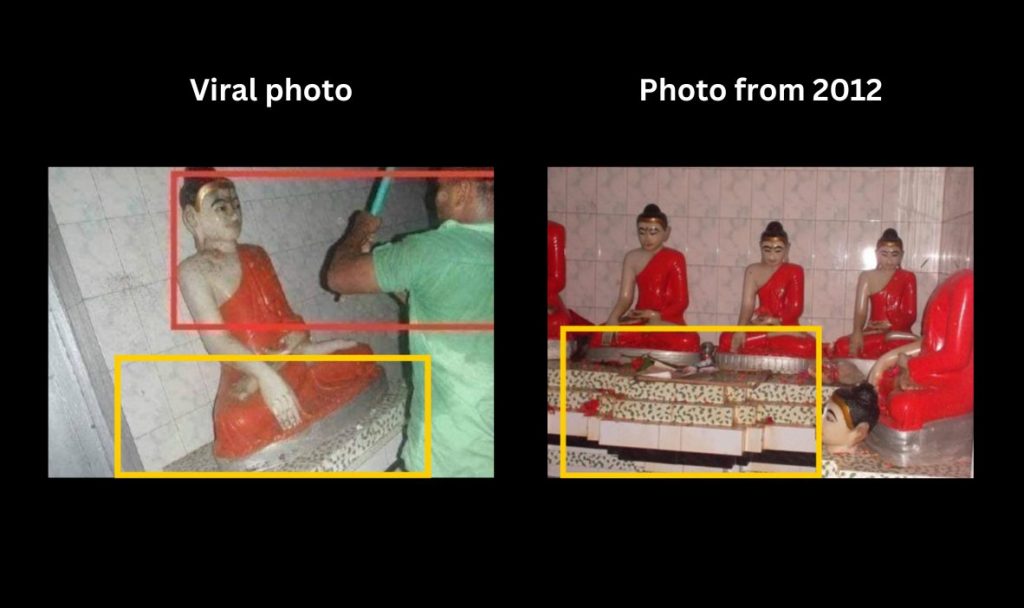 We also came across another blog article from 2012 that reported on the violence unleashed by Muslim extremists on the Buddhist community in Ramu in Cox’s Bazar on September 29-30. The photo attached in this article also matches with the one marked 1 in the viral collage, showing the Buddha statue being attacked.