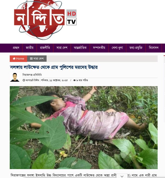 The report mentioned that on October 11, villagers of Salanga in Sirajganj district spotted a dead body near Salanga Islam High School. The woman was identified as Anna Rani Das, 45, a member of the village police force.