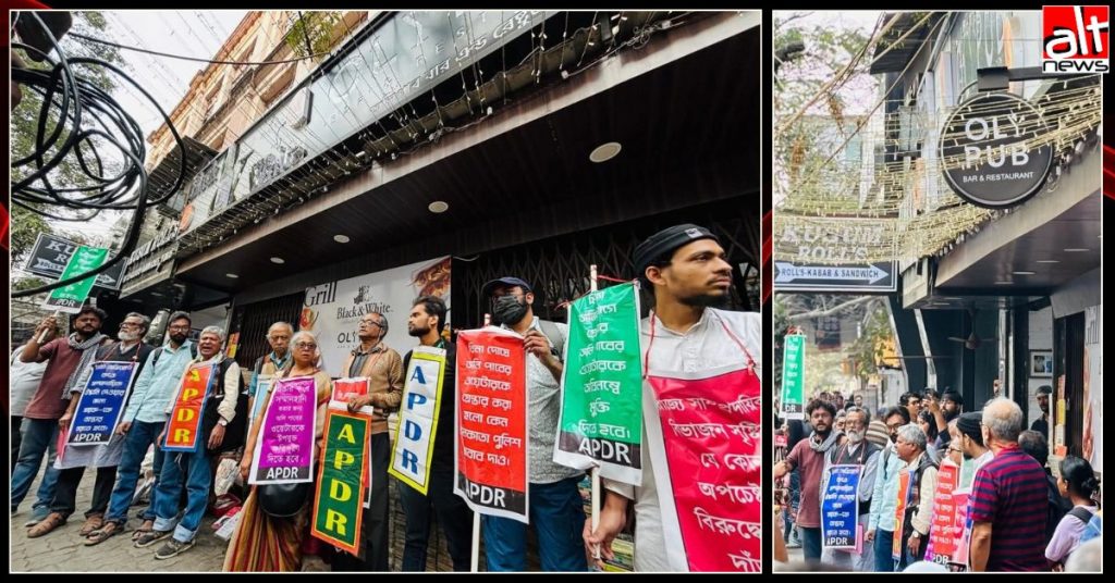 Once, the news of the Oly Pub’s waiter’s arrest started circulating, Kolkata based theatre activist Joyraj Bhattacharya lodged a counter complaint against Sayak Chakraborty on Saturday night. He was accompanied by Kolkata high court advocate and legal activist Samim Ahamed.