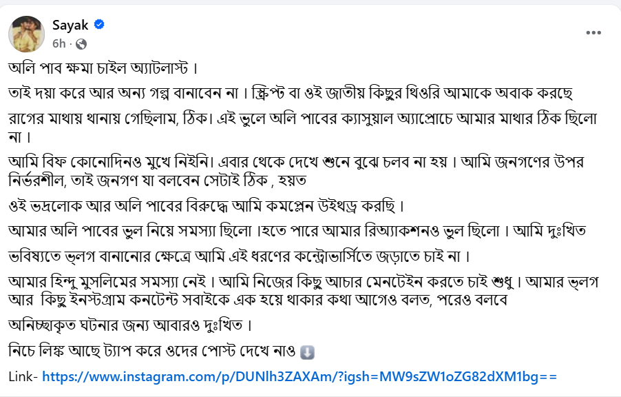 In response, Chakraborty also said in a Facebook post that he was glad that Olypub had ‘apologized’ and he did not want to push the issue further.