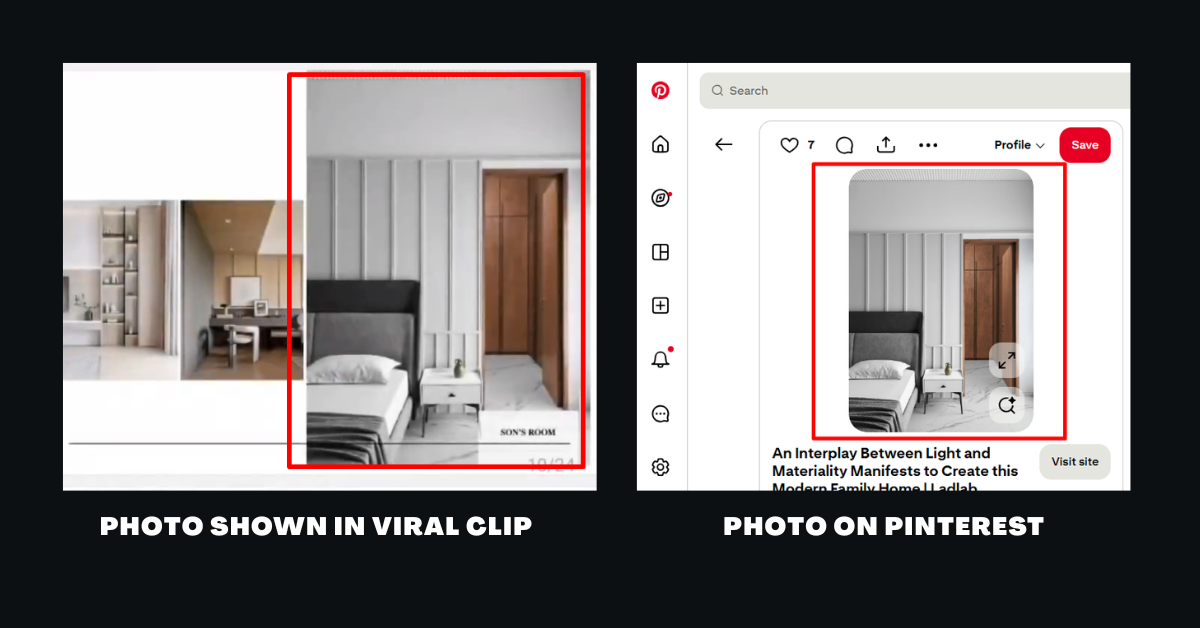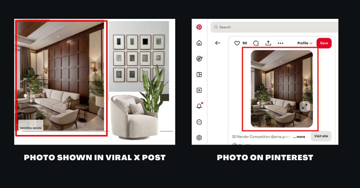 Similarly, we could find that several pictures which featured in the viral social media posts had been taken from Pinterest.