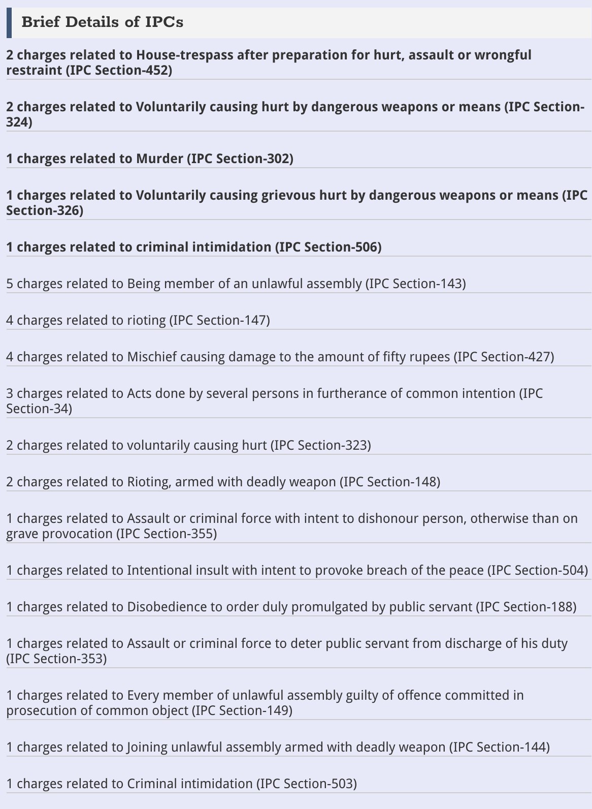 2 charges related to Rioting, armed with deadly weapon (IPC Section-148)