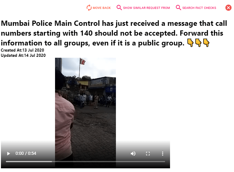 A user tweeted one such video of Maharashtra police on July 10, 2020 and wrote, “@MumbaiPolice got this video on whatsapp informing not to pick up call from phone number starting with 140. This seems to be during covid pandemic as police is wearing a mask. Can you please confirm the authenticity of this news?”
