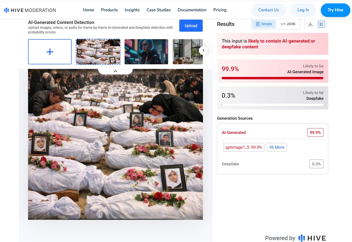 To further substantiate our findings, we scanned the picture using the AI detection tool Hive Moderation, which indicated that the image was 99% AI-generated.