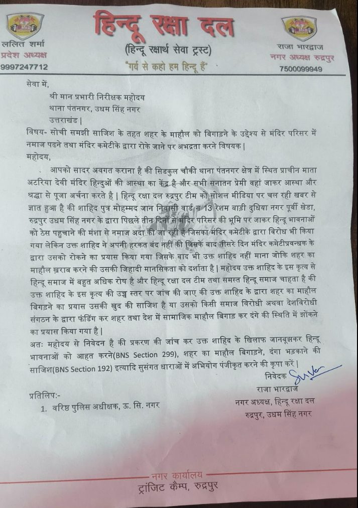 Pant Nagar police confirmed to Alt News that the incident occurred on February 24, 2026, and Arvind Sharma, the manager of the Atariya Mata temple, was the accused. According to police, the field where Shahid was praying belonged to Sharma. They stated that the charges against Sharma did not result in arrest or detention. The allegations include physical violence, verbal abuse, and intimidation with the intent to cause death. The case was still under investigation, they said.