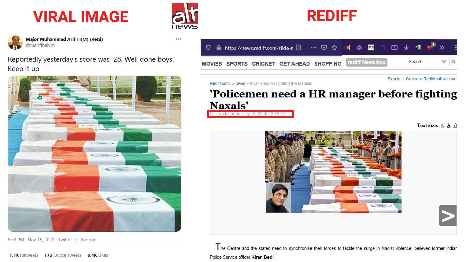 Therefore, a former Pakistani army major posted at least a decade old image of Indian martyrs with the false claim that 28 Indian troopers lost lives in ceasefire violations by Pakistan on November 13. Four army men and one BSF soldier had died in the clashes.