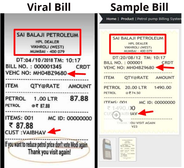 To sum it up, an image of an old sample petrol pump bill was edited and circulated on social media. The accompanying false claim said that the Maharashtra government is appealing to people to not vote for PM Modi in the next elections.