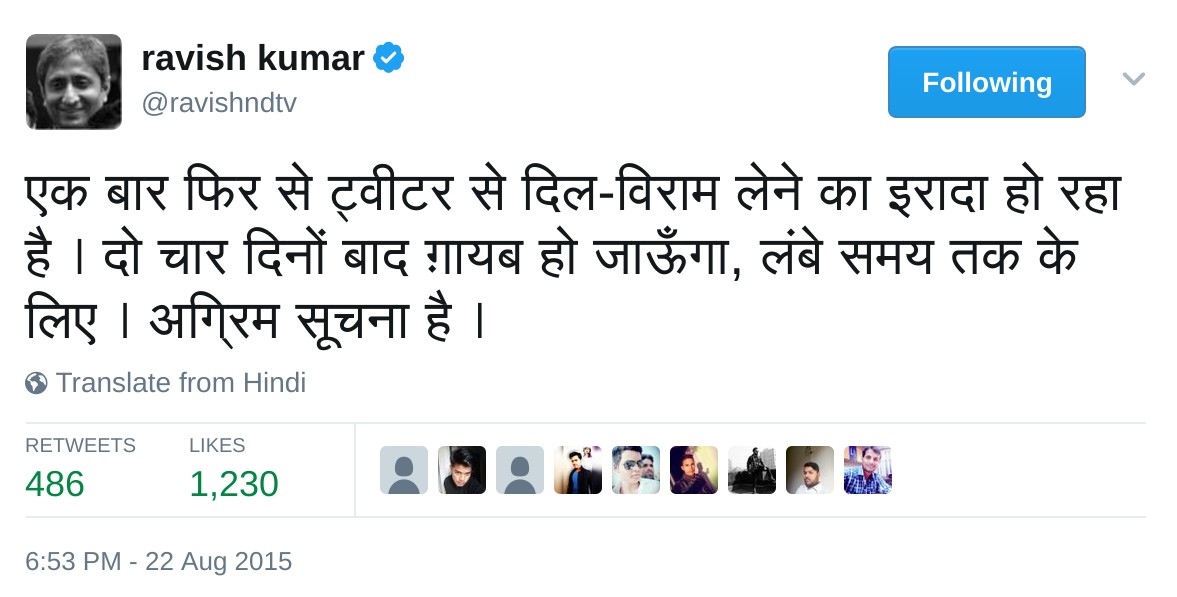 Post 2014, if one scrolls through the Twitter accounts of these very Modi supporters, it would seem as if Ravish Kumar is their arch-enemy. They have indulged in many online campaigns against him which are essentially attempts of character assassination. The constant trolling led to Ravish Kumar quitting Twitter in August 2015.