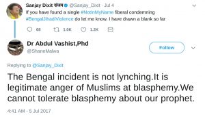 These tweets are designed to hurt Hindu sentiments and especially so after a terror attack in which Hindu pilgrims were killed. Even during the recent riots in Basirhat, Bengal, this Twitter account tried similar tactics.