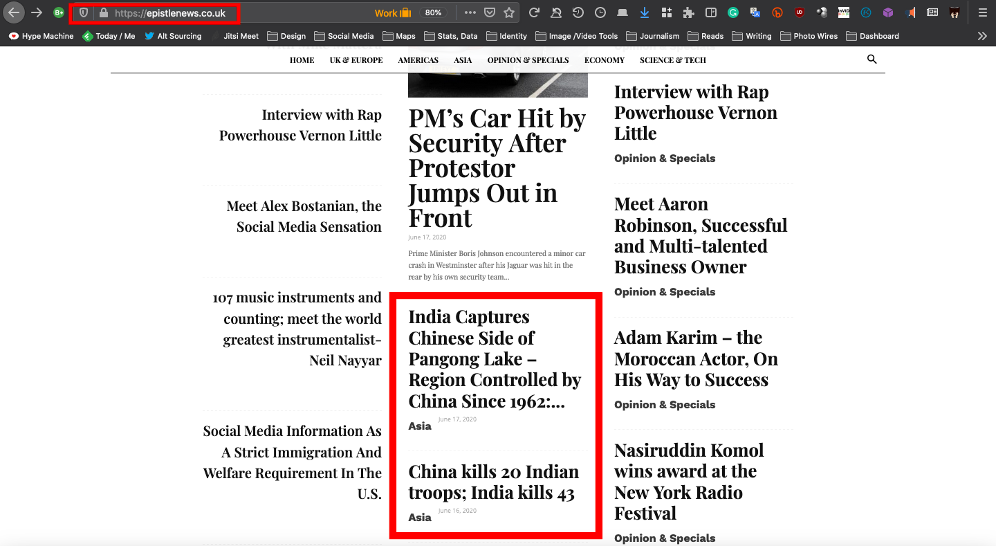 On June 17, a UK-based news platform Epistle News published a report that claimed India has captured the Chinese side of Pangong Lake for the first time since 1962. The article is no longer accessible on the website. However, the tweet (archive link) posted by Epistle News Twitter account shows such an article was indeed published.