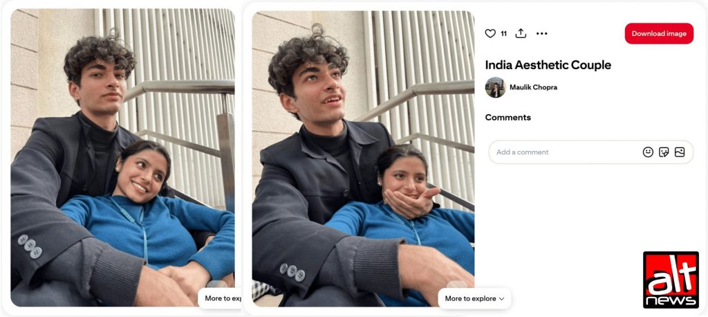 We performed reverse image searches to trace the origin of the viral photos. We found images 1 and 4 uploaded on the account of influencer Maulik Chopra on Pinterest. In these photos, Maulik is seen with a woman.