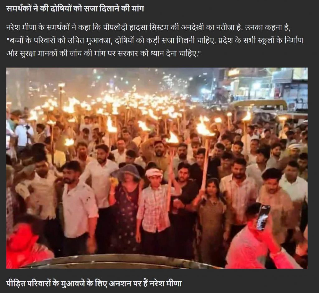 Additionally, we also found news reports on the said procession. NDTV, for example, confirmed that supporters of Meena had taken out the rally and demanded proper compensation for the bereaved families and punishment to the culprits.