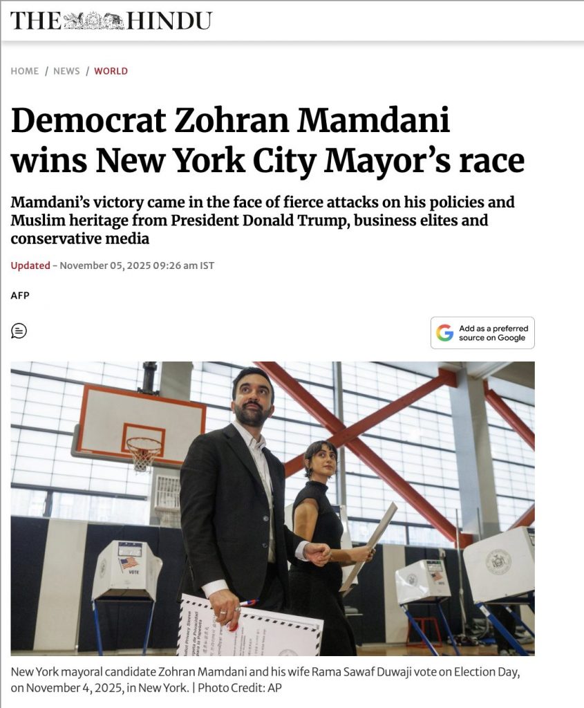 यानी, न्यूयॉर्क में कैब ड्राइवर के नमाज़ पढ़ने का वायरल वीडियो 2010 से सोशल मीडिया पर मौजूद है. जबकि डेमोक्रेटिक पार्टी के सदस्य ज़ोहरान ममदानी ने 4 नवंबर 2025 को न्यूयॉर्क मेयर चुनाव में जीत हासिल कर, न्यूयॉर्क शहर के मेयर रूप में निर्वाचित हुए. इससे स्पष्ट होता है कि वायरल वीडियो का ज़ोहरान ममदानी मेयर बनने से कोई संबंध नहीं है.