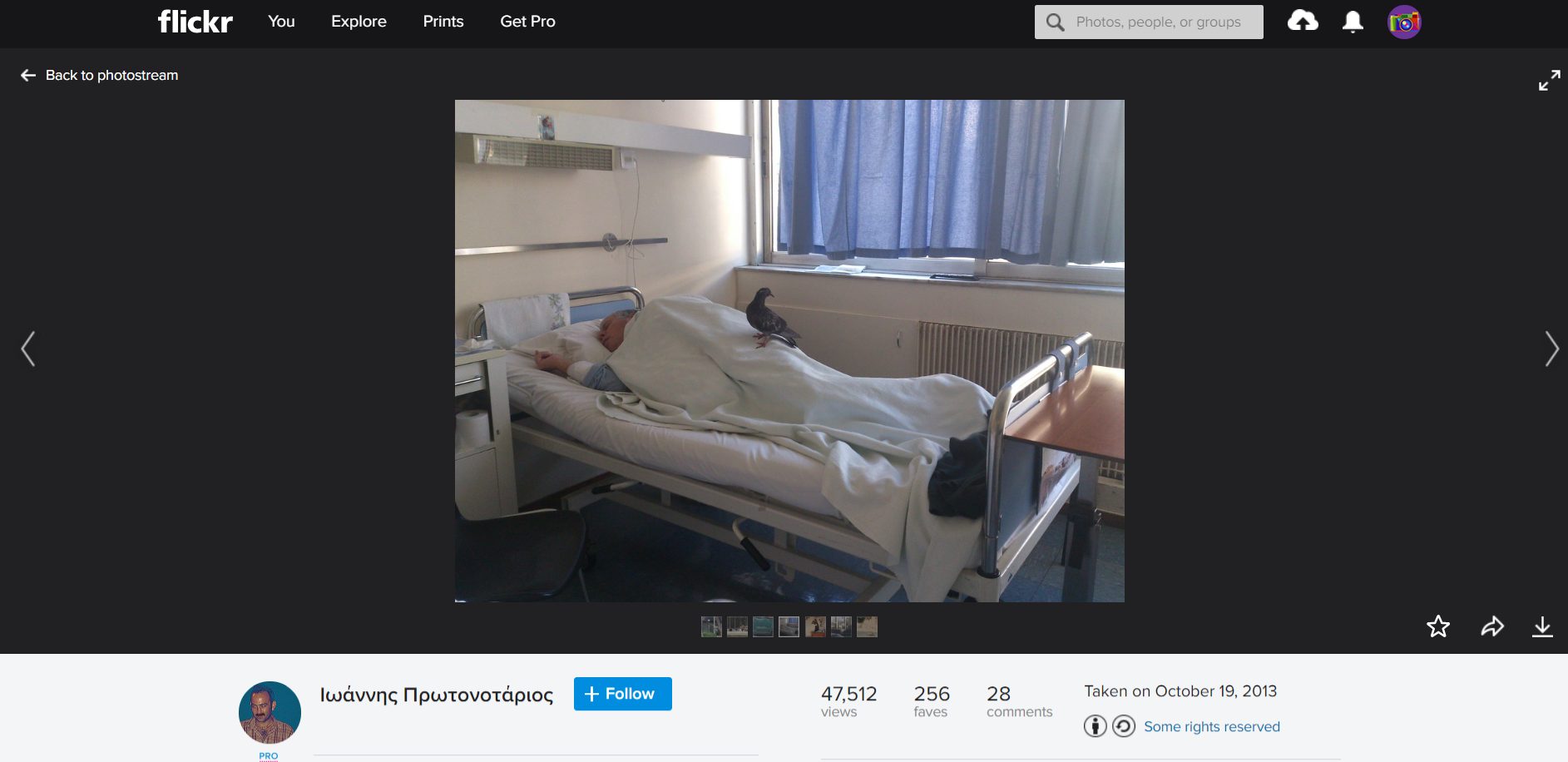 इस तस्वीर पर 28 लोगों ने कमेंट भी किया हुआ है. किसी ने फ़ोटोग्राफर से पूछा है कि इस तस्वीर के पीछे क्या कहानी है. उसके जवाब में आयोनिस ने बताया है, “मेरे पिता की याद में है, जो सिर्फ़ 5 दिन पहले ही इसके बगल वाले बेड पर हुआ करते थे.”