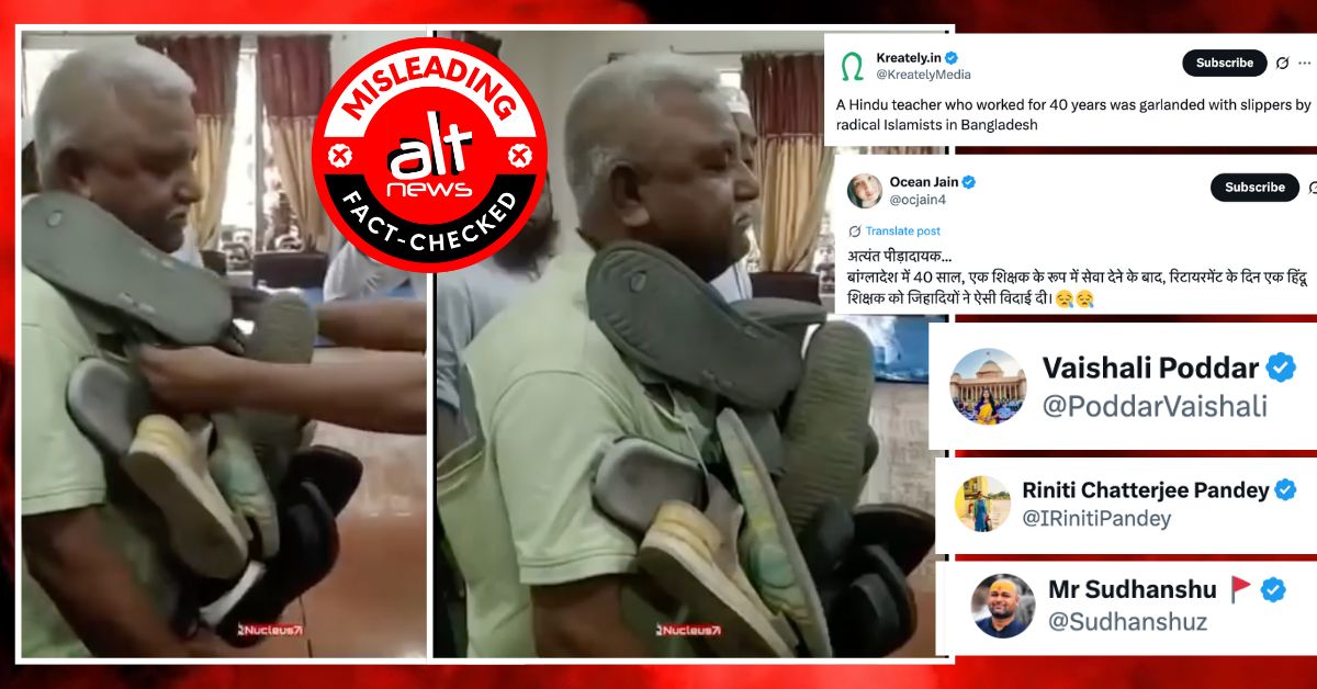 बांग्लादेश में चप्पलों की माला पहने हुए एक मुस्लिम शख्स को हिंदू शिक्षक बताकर वीडियो वायरल
