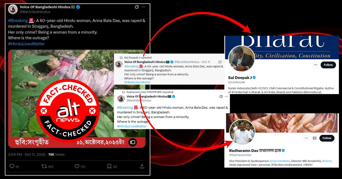 बांग्लादेश में एक हिन्दू महिला की हत्या को भारतीय सोशल मीडिया पर गलत कम्यूनयल रंग दिया गया