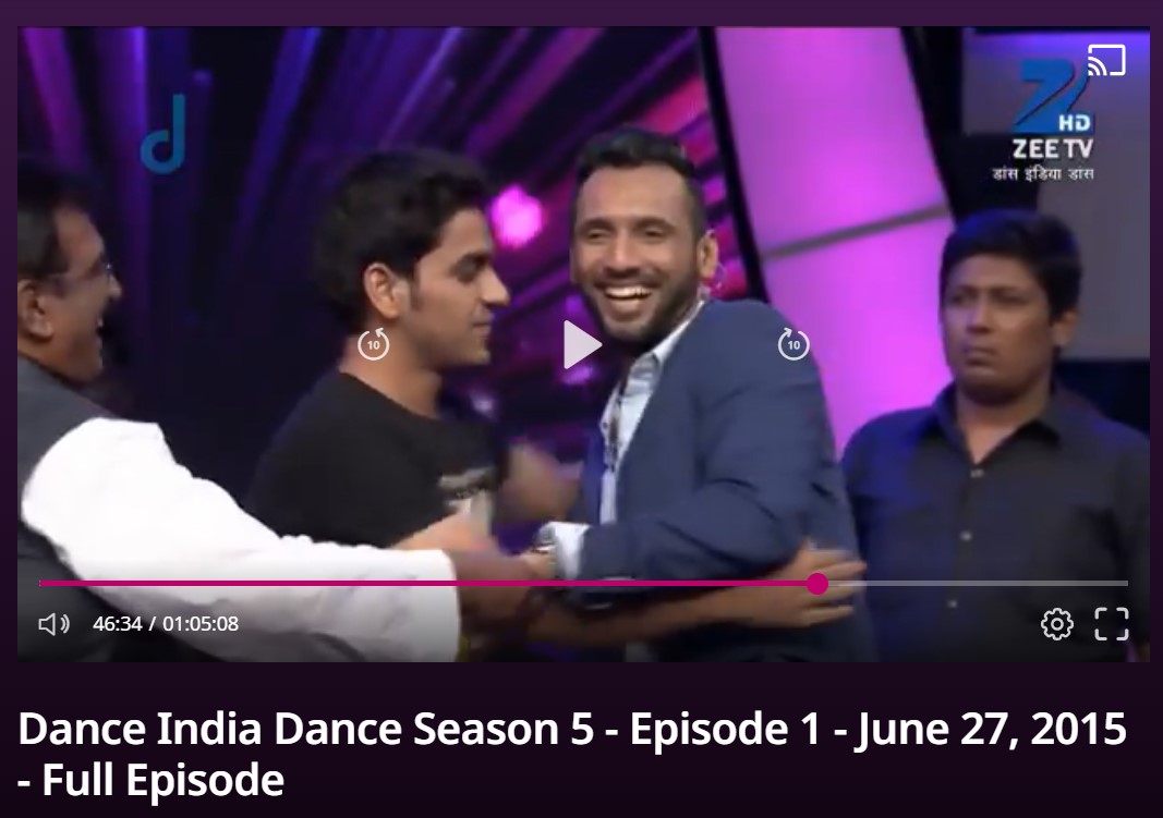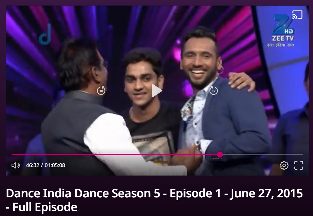 डांस इंडिया डांस के सीज़न 5 का पहला एपिसोड 27 जून, 2015 को टीवी पर आया था. ये एपिसोड 1 घंटे से ज़्यादा लंबा है. 46 मिनट निकलने के बाद के कुछ स्क्रीनशॉट नीचे देखे जा सकते हैं जब मास्टर पुनीत पाठक को बताया गया कि ये एक प्रैंक था. ये स्क्रीनशॉट ‘Zee5’ (एक सब्सक्रिप्शन बेस्ड स्ट्रीमिंग साइट/ऐप) से लिए गए हैं. आप पूरा एपिसोड वहां देख सकते हैं.