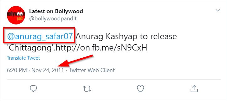 दरअसल 2010 से पहले इस हैंडल का यूज़र नेम @anuragkashyap07 हुआ करता था. इस बात की जानकारी हम बैक डेट में यूज़र नेम को ढूंढने पर पता कर पाए. जिसे नीचे के स्क्रीनशॉट से समझा जा सकता है.