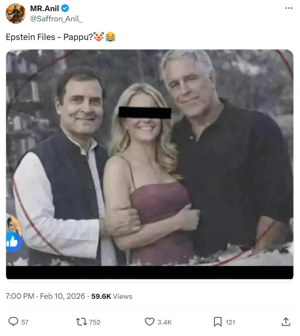 कुल मिलाकर, कई यूज़र्स ने नरेंद्र मोदी और राहुल गांधी की एडिटेड तस्वीर शेयर करते हुए भ्रामक दावा किया कि उनकी तस्वीर एपस्टीन फाइल्स में कुख्यात सेक्स ऑफेंडर जेफरी एपस्टीन के साथ मिली. जबकि, तस्वीरों की बनावट और विजुअल कलू स्पष्ट करते हैं कि इन तस्वीरों को आर्टिफिशियल इंटेलिजेंस या फोटो एडिटिंग सॉफ्टवेयर की मदद से बनाया गया है.