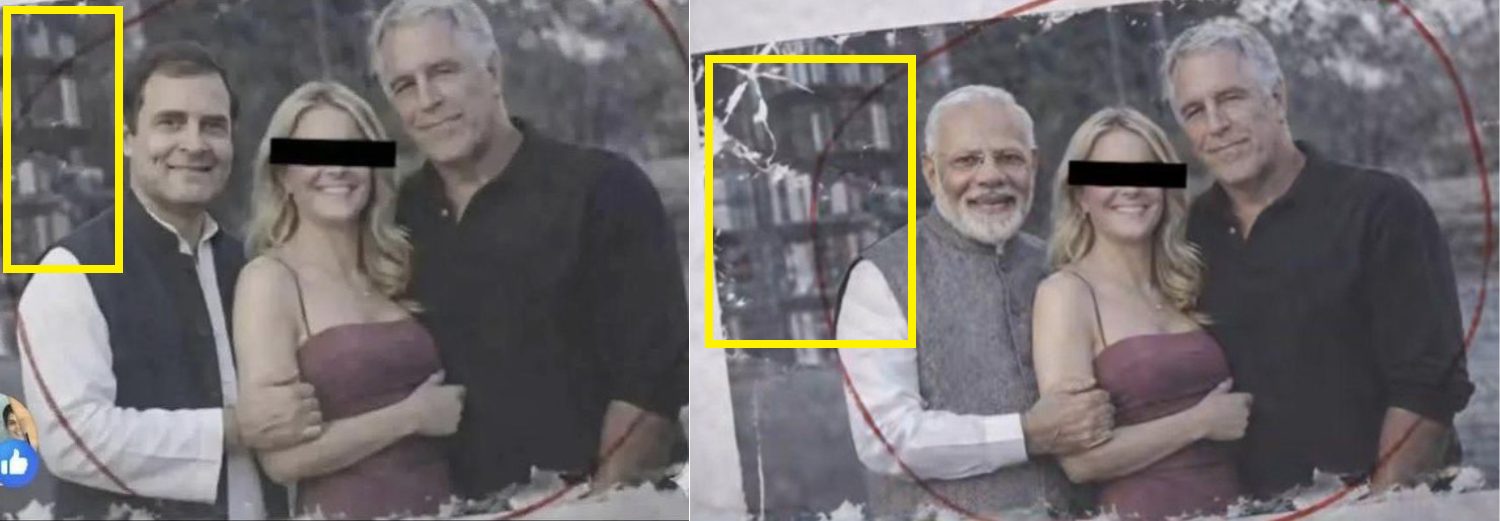 वायरल तस्वीरों को ध्यान से देखने पर इसमें कई खामियां दिखती हैं, जो इनके असली होने पर सवाल उठाती हैं. एक ही तस्वीर में जेफ्री एपस्टीन के पीछे की जगह खुली दिख रही है, जबकि मोदी और राहुल गांधी के ठीक पीछे किताबों की एक अलमारी जैसी नजर आती है. एक ही फ्रेम में दो अलग-अलग बैकग्राउंड का होना तस्वीर पर संदेह और गहरा करता है. इसके अलावा, नरेंद्र मोदी और राहुल गांधी की अलग-अलग तस्वीरों में बैकग्राउंड से लेकर सबकुछ बिल्कुल एक जैसा है. यह इस बात का पुख्ता सबूत है कि दोनों तस्वीरों को एडिट करने में एक ही टेम्प्लेट का इस्तेमाल किया गया है.