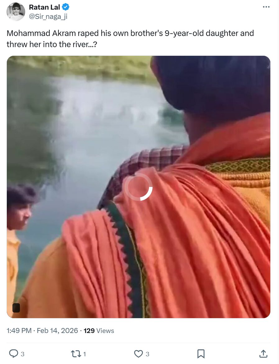 रतन लाल नाम के यूज़र ने भी वीडियो शेयर करते हुए मोहम्मद अकरम नाम के व्यक्ति पर आरोप लगाते हुए कहा कि उसने अपने ही भाई की 9 साल की बेटी का रेप किया फिर उसकी बॉडी को नदी में फेंक दिया. (आर्काइव लिंक)