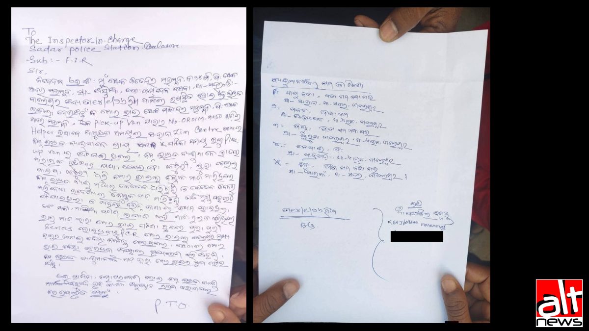 ऑल्ट न्यूज़ ने सदर पुलिस स्टेशन में जितेंद्र द्वारा सौंपी गई शिकायत की एक कॉपी हासिल की. उड़िया में लिखी दो पन्नों की शिकायत में जितेंद्र ने मकंदर पर किए गए क्रूर हमले का विवरण दिया. इसमें लिखा था कि उसके भाई के साथ दुर्व्यवहार किया गया, पीटा गया और दरांती जैसे तेज़ हथियारों से हमला किया गया. हमले के पीछे पांच लोगों का नाम लिया गया – बापू नन्ना, पवन, पिंटू, नेपाली और चीनू. इन पांचों पर मकंदर मोहम्मद की हत्या का आरोप है.