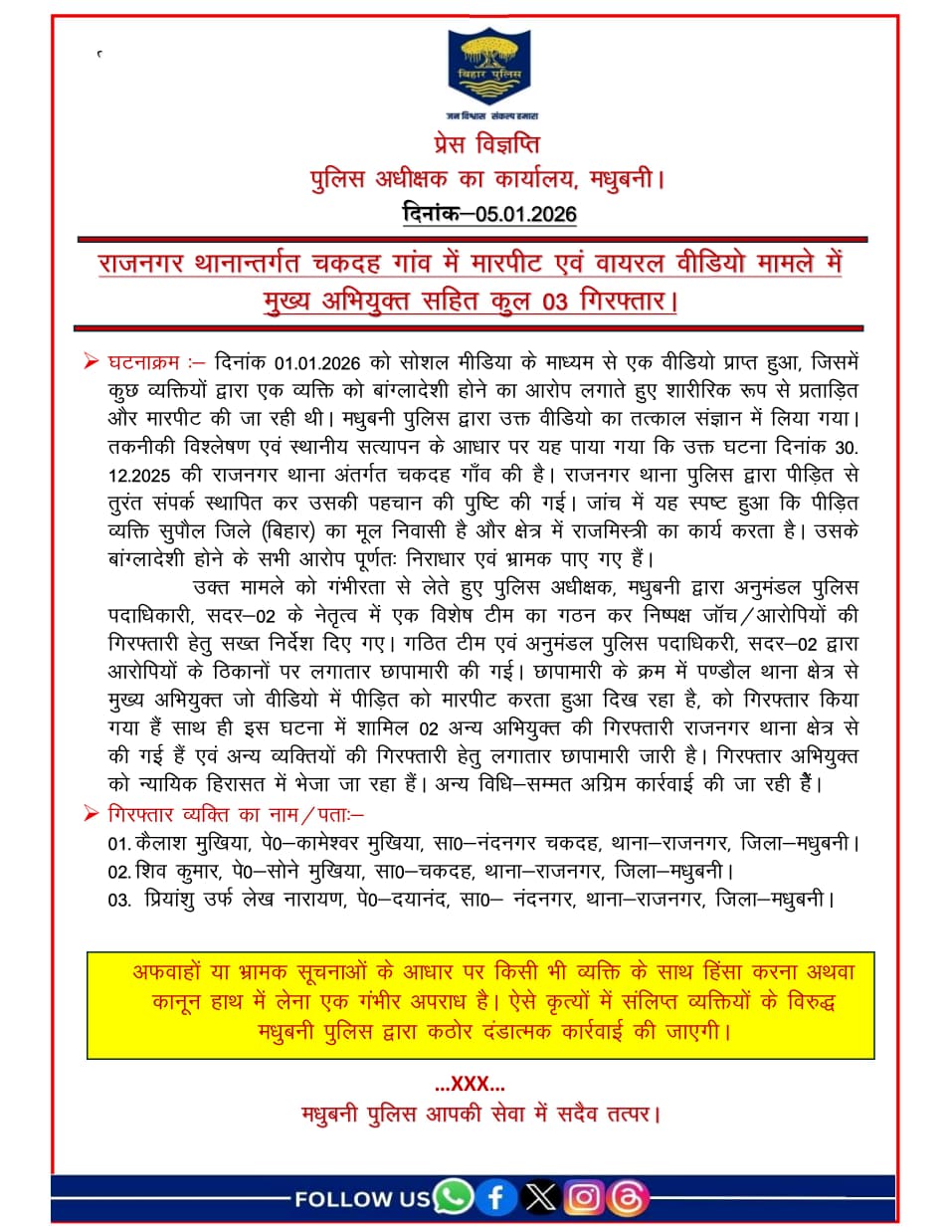 — Madhubani Police (@MadhubaniPol) January 2, 2026