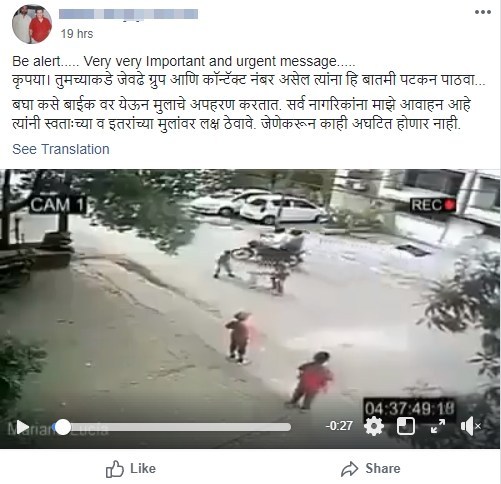 एक अन्य वीडियो जो पहले तमिलनाडु में बच्चों को अगवा करने की घटना से संबंधित बताया गया था, इसे अब एक मराठी कैप्शन के साथ साझा किया जा रहा है, और अन्य लोगों से यह संदेश फैलाने का आग्रह किया जा रहा है कि बच्चे खतरे में हैं।