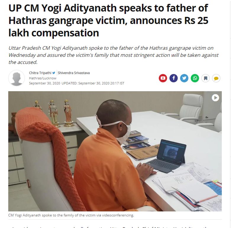 ओरिजिनल तस्वीर ANI ने 30 सितम्बर को खींची थी. उस वक़्त मुख्यमंत्री योगी आदित्यनाथ पीड़िता के पिता से वीडियो कॉल पर थे. उसमें भी पीड़िता के पिता की तस्वीर को गोपनीय रखते हुए ब्लर कर दिया गया था. ANI ने ट्वीट कर बताया था कि मुख्यमंत्री ने बात करने के साथ ही परिवार को 25 लाख मुआवज़ा और एक सदस्य को नौकरी देने की भी बात कही.