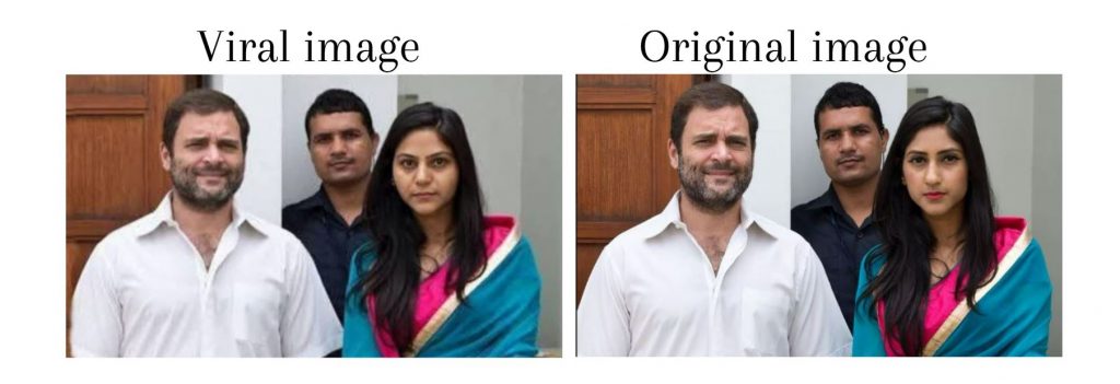 हमने राहुल गांधी के पोस्ट में दिख रही महिला के चेहरे की तुलना वायरल तस्वीर से की. मालूम चला कि इसमें भी ज्योति मल्होत्रा का चेहरा लगाया गया है.