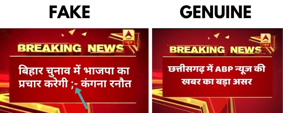 1. हमें ऐसा कोई ABP न्यूज़ का ब्रॉडकास्ट नहीं मिला जिसमें मीडिया आउट्लेट ने ये खबर चलाई हो. हकीकत में, किसी भी मीडिया संगठन ने कंगना रानौत के बिहार चुनाव में भाजपा का प्रचार करने की खबर शेयर नहीं की है.