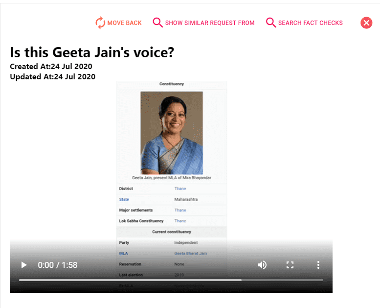 इस तरह, हमने देखा कि मीरा भायंदर की विधायक गीता जैन के हवाले से एक फ़र्ज़ी ऑडियो क्लिप वायरल हो रही है.