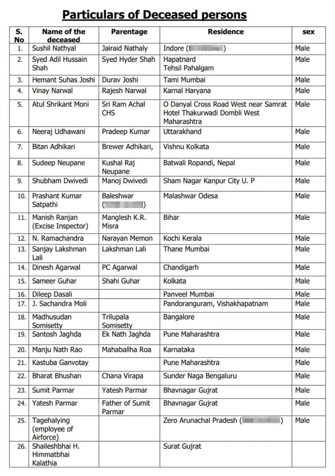 इस लिस्ट पर संदेह होने के बहुत कारण हैं. पहला, इसमें करनाल के रहने वाले नेवी अफसर विनय नरवाल का नाम नहीं है. और ये वो नाम है जो फिलहाल हर भारतीय के दिमाग में घर कर गया है. क्यूंकि मृत विनय के पास बैठी उनकी पत्नी की झकझोर देने वाली तस्वीर मीडिया से लेकर सोशल मीडिया पर खूब शेयर की गई. दूसरा, कर्नाटक के मंजूनाथ राव का भी नाम नहीं है जिनका अपनी पत्नी के साथ शिकारा राइड का वीडियो वायरल हुआ था.
