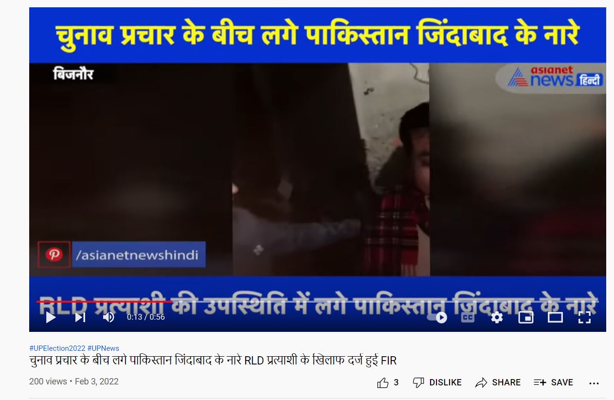 हमने आकिफ़ अंसारी से बात की जिनके नाम के नारे को ‘पाकिस्तान ज़िंदाबाद’ बताया जा रहा है. उन्होंने कहा, “मुझे पता चला कि विपक्षी लोगों द्वारा ये वीडियो वायरल किया गया. RLD की चुनावी मीटिंग थी और वहां जनसैलाब था. मैं भी उसी क्षेत्र से सभासद हूं. वहां नारे लग रहे थे जयंत चौधरी ज़िंदाबाद, नीरज चौधरी ज़िंदाबाद. लोगों ने मेरे नाम का भी नारा लगा दिया, ‘आकिफ़ भाई ज़िंदाबाद’. इसी वीडियो को आईटी सेल वालों ने शेयर कर ग़लत दावा किया कि वहां ‘पाकिस्तान ज़िंदाबाद’ के नारे लगे. ये सब चुनाव प्रभावित करने के लिए किया गया.”