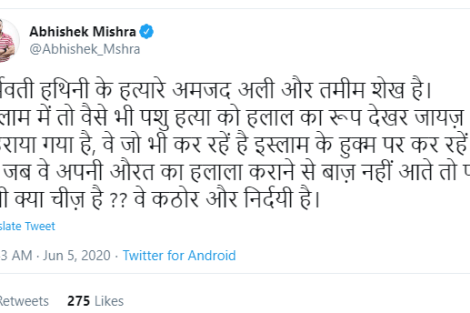 फ़र्ज़ी सूचनाओं को शेयर करने के लिए पहचाने जाने वाले प्रशांत पटेल उमराव ने इस सांप्रदायिक दावे को शेयर किया है. उमराव द्वारा पहले भी सोशल मीडिया में शेयर किये गए कुछ ऐसे ही फ़र्ज़ी दावों को आप इस आर्टिकल में पढ़ सकते हैं. (ट्वीट का आर्काइव लिंक)